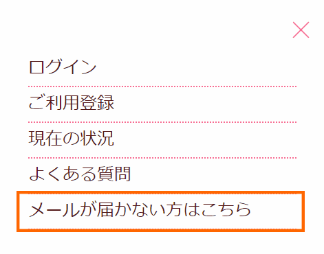 メール受信許可設定の方法は、Web予約サイトのサイドメニュー上の[メールが届かない方はこちら]に設定方法をご案内していますので、ご確認ください。