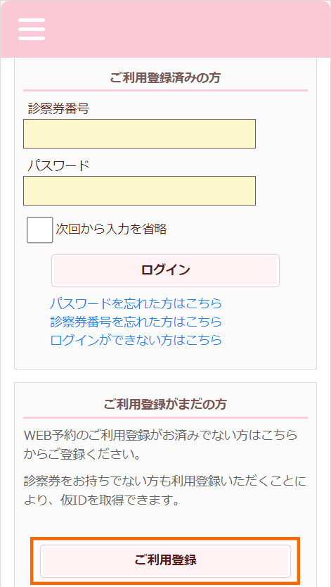 初回登録の方法(初めてWeb予約をご利用される方は初回登録が必要です。)