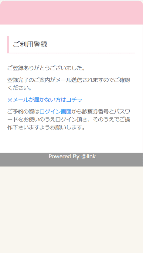 当院からのメールを送信いたします。メールに記載されたURLをクリックしてください。