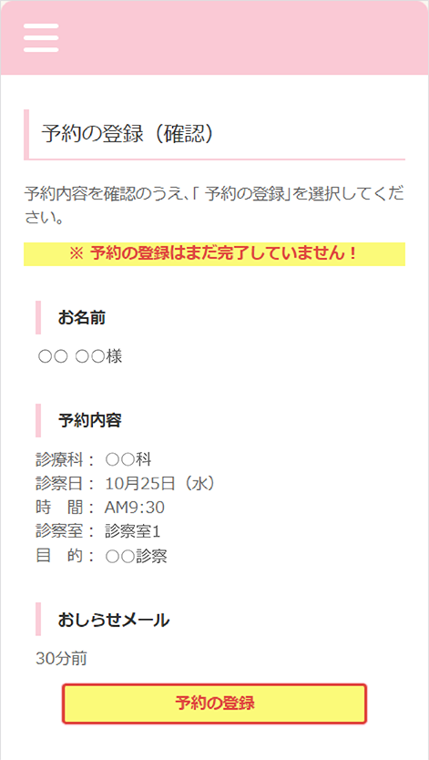 予約された日時を確認できるだけでなく、診察当日はご自分の順番があとどれくらいかが確認できます。